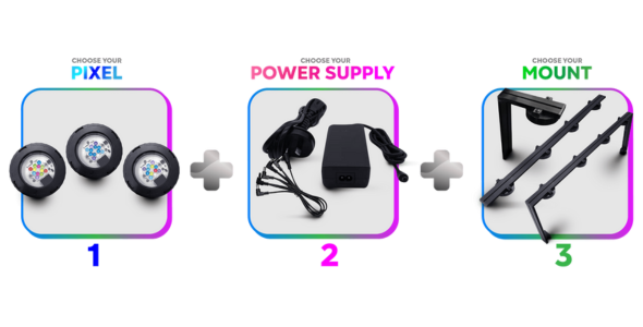 REMEMBER The Pixels need both a power supply (single, dual or quad) and also a mounting system (rear or rail). Please be sure to hit the live chat button if you have any questions.